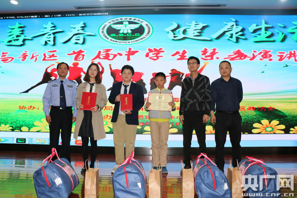 央廣網(wǎng)合肥4月19日消息 為了進一步強化校園毒品預防教育工作,不斷增強青少年識毒、防毒、拒毒意識,4月18日,合肥市高新區(qū)首屆中學生“無毒青春 健康生活”演講比賽舉行。