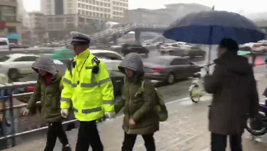 1月9日清晨7點左右,當(dāng)許多人在還暖室迎接2019年的第一場雪,一條暖心的微視頻在微博和朋友圈迅速轉(zhuǎn)發(fā)、傳播。畫面中雪天風(fēng)寒,一位執(zhí)勤交警將兩位小學(xué)生送過積雪成冰的緩坡,正打算轉(zhuǎn)身離去投入交通早高峰的疏導(dǎo)時,孩子們自發(fā)地向這位“暖心”交警敬禮。
