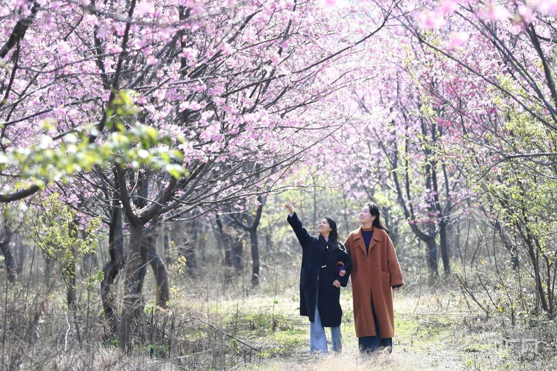 微風(fēng)輕拂,花枝搖曳生姿,空氣中彌漫著清甜的花香,令人心曠神怡;ㄩg小徑上,隨處可見慕名而來的市民游客,大家三五成群,或漫步花下感受春意,或駐足拍照,定格美好瞬間,處處洋溢著輕松愉悅的氛圍。