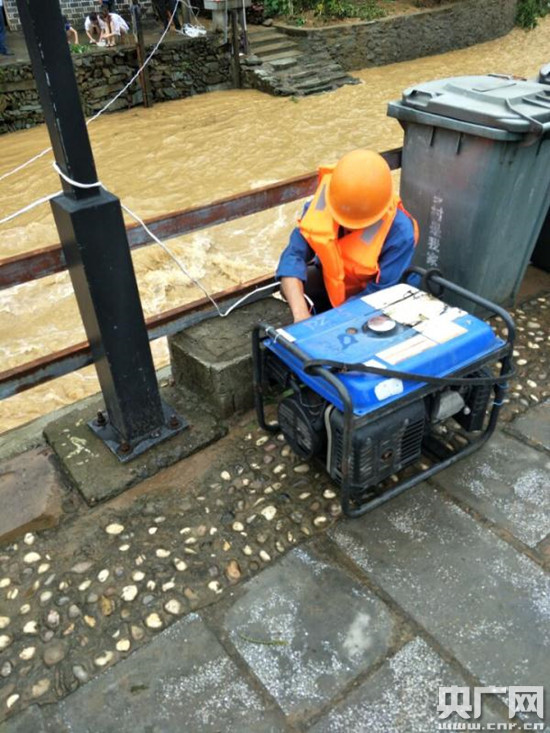 黃山黟縣,工作人員正在開展搶修工作。