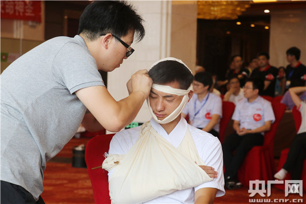 比賽現(xiàn)場(chǎng),來(lái)自安徽省內(nèi)各衛(wèi)生醫(yī)療機(jī)構(gòu)的選手,在現(xiàn)場(chǎng)模擬演示心肺復(fù)蘇、止血包扎、檢傷分類、固定搬運(yùn)等專業(yè)救援技能!氨荣愋问胶芏鄻,類別也很多,讓我們?cè)阢@研業(yè)務(wù)的同時(shí),能夠提升實(shí)踐能力。”一位選手告訴央廣網(wǎng)記者。