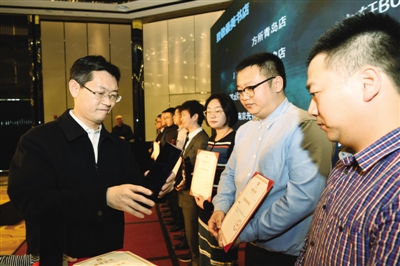 安徽省新聞出版廣電局黨組書記、局長陳燁為十佳學(xué)習(xí)型書店頒獎(jiǎng)。