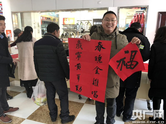 央廣網(wǎng)合肥2月9日消息(記者徐鵬 通訊員金海礁)“‘生意在人為,春風迎客至’。這幅對聯(lián)送給你,祝你財源廣進!”2月6日,在位于安徽北沿江高速上的清溪服務區(qū)內(nèi),來自褒禪山畫院的書法名家將一副散發(fā)著墨香的對聯(lián),送給了一位旅客。