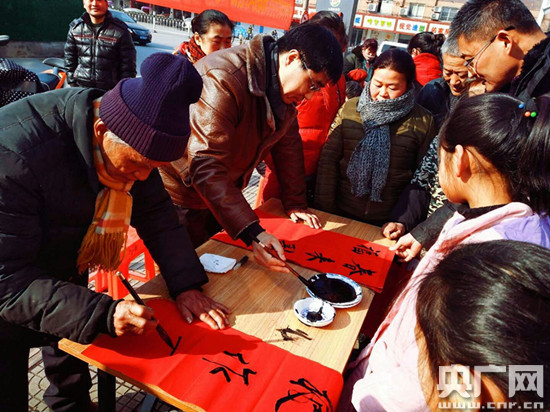前來廟會助陣的有“讓社區(qū)多個幫手”結(jié)對單位、轄區(qū)愛心企業(yè)代表、街道工作人員等。他們和社區(qū)老年大學(xué)的書法家們一起現(xiàn)場書寫春聯(lián),免費贈送給轄區(qū)居民及為辛勤的環(huán)衛(wèi)職工。