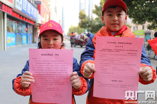 當(dāng)天,來自合肥南七街道丁崗社區(qū)的小學(xué)生志愿者們前往轄區(qū)小區(qū),上門宣傳燃放煙花爆竹的危害,發(fā)放禁燃禁放調(diào)查問卷,邀請(qǐng)居民一起開展“禁燃禁放”簽名承諾活動(dòng),并送上春聯(lián)和新春的祝福。