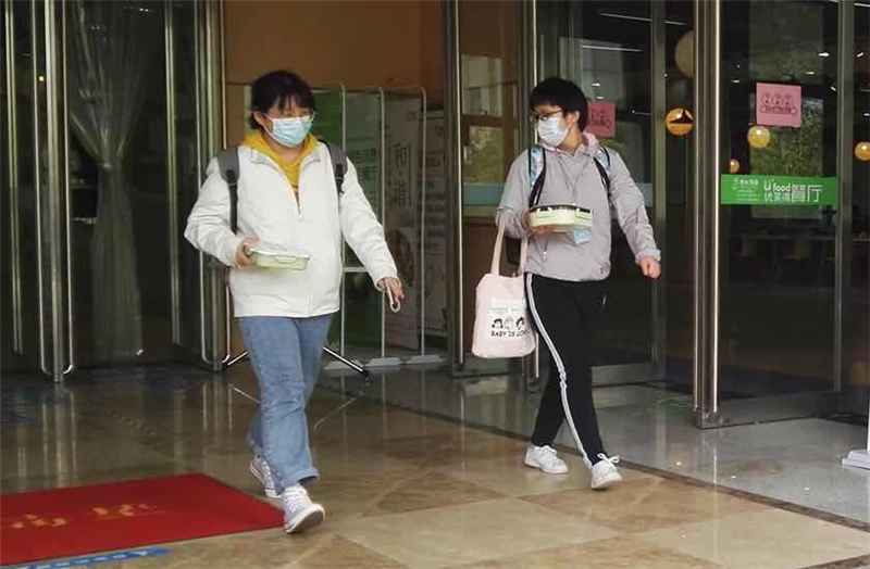 同時(shí),學(xué)校餐廳取消了之前的選餐模式,改為套餐供應(yīng),學(xué)生在就餐時(shí),嚴(yán)格按照秩序排隊(duì)進(jìn)門(mén)前先消毒,之后分批排隊(duì)取餐,再分區(qū)域就餐。