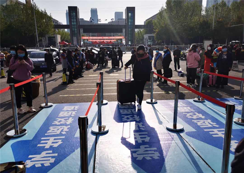 返校學(xué)生通過(guò)學(xué)生返校通道進(jìn)入校園(圖片來(lái)源:合肥晚報(bào))