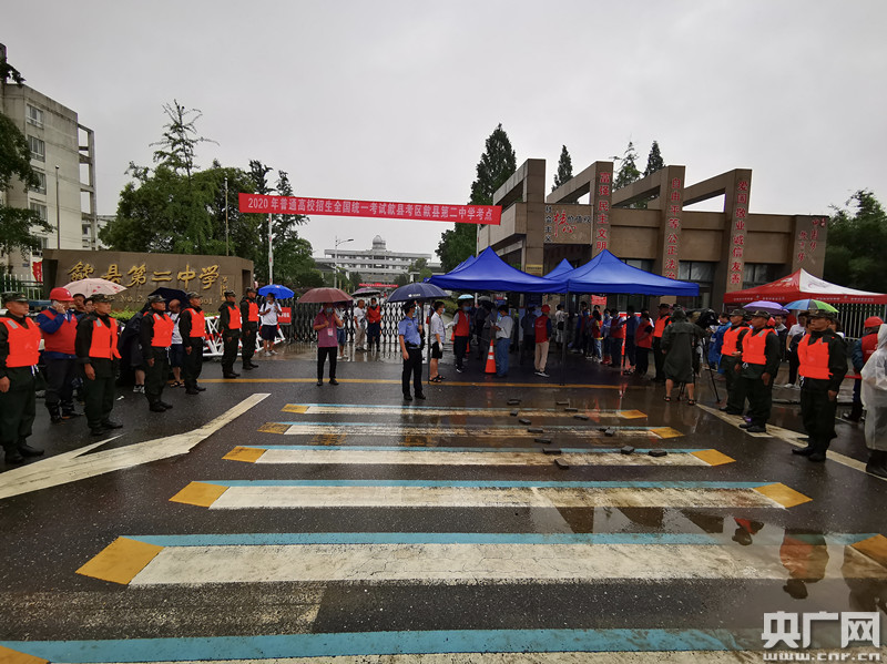 上午7時許,當?shù)?000多名考生陸續(xù)走進歙縣中學(xué)和歙縣二中兩個考點,開始綜合、外語科目考試。