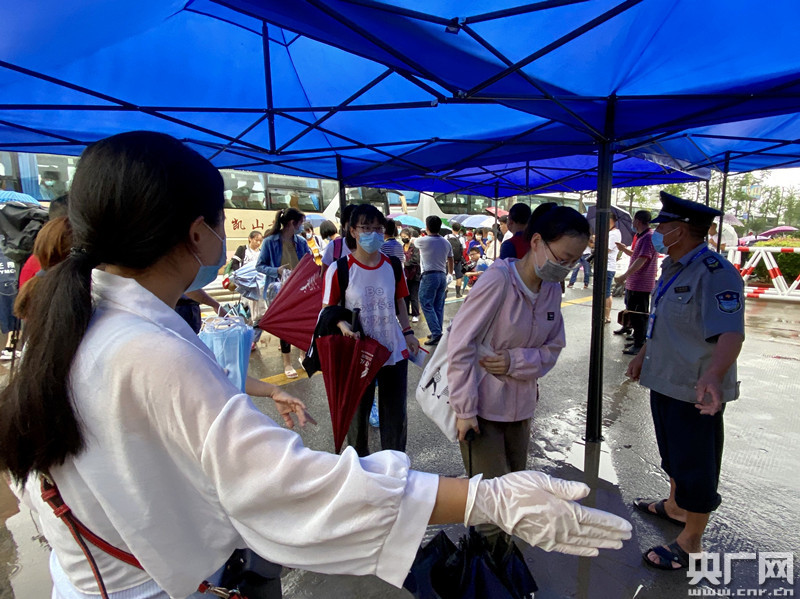 考生在進行體溫檢測。(央廣網(wǎng)發(fā) 張強攝)