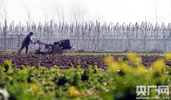 包河區(qū)大圩鎮(zhèn)新河村農(nóng)民駕駛農(nóng)用機(jī)械在田間犁地備播。 隨著氣溫逐漸回暖,包河區(qū)大圩鎮(zhèn)萬(wàn)畝蔬菜園及葡萄園里一片繁忙景象,不少農(nóng)民抓住晴好天氣時(shí)機(jī)開展春耕備耕工作,為下一步種植打好基礎(chǔ)。(張大崗攝)