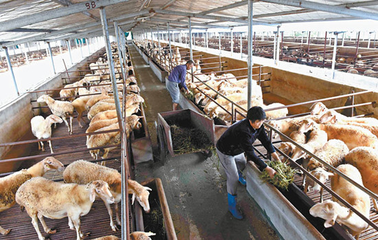 近日,在省標準化養(yǎng)殖示范基地——廬江縣祥瑞養(yǎng)殖有限公司里,工人正在按標準化養(yǎng)殖法給湖羊喂草。今年,該縣冶父山鎮(zhèn)依托“祥瑞”公司成立了湖羊養(yǎng)殖扶貧產業(yè)園,采取“龍頭企業(yè)+合作社+貧困戶”的模式,讓貧困戶每年收獲保底紅利4000元,幫助557戶貧困戶踏上養(yǎng)羊脫貧路。通訊員 周躍東 攝