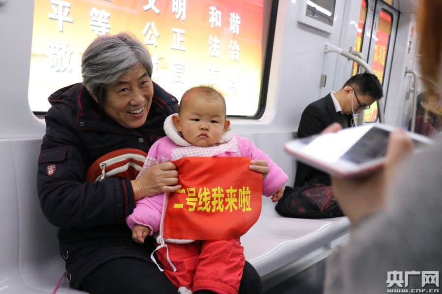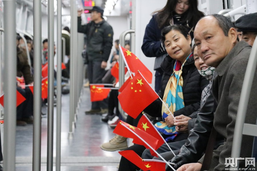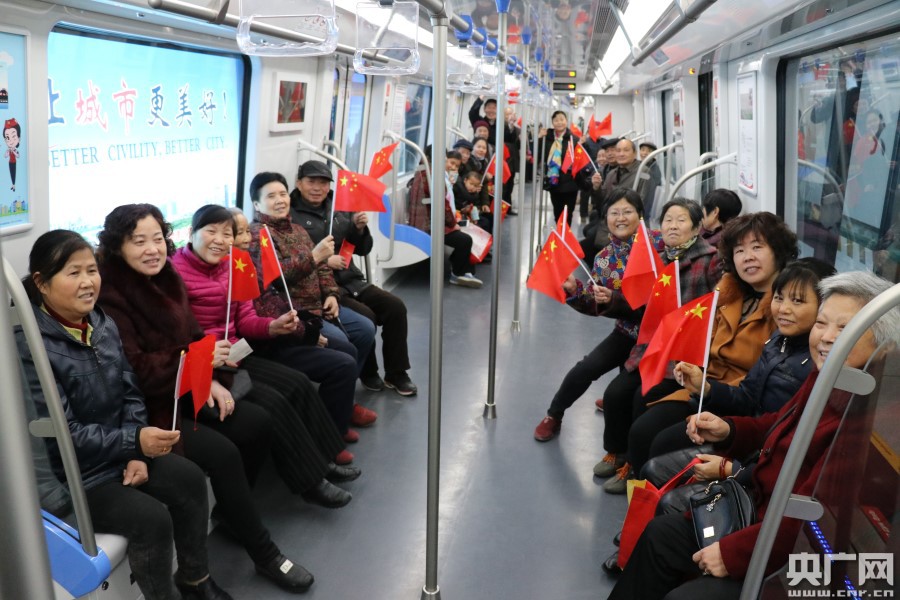 央廣網(wǎng)合肥12月6日消息(記者徐鵬)12月6日,是合肥地鐵2號(hào)線百萬市民大型試乘活動(dòng)的首日。如果說合肥地鐵1號(hào)線開創(chuàng)了這座城的“地鐵時(shí)代”,那么2號(hào)線則預(yù)示著合肥進(jìn)入“十字換乘時(shí)代”,地鐵不再是“一條線”,而是形成一張網(wǎng)。因此,不少合肥市民大早上便來到地鐵站,第一時(shí)間體驗(yàn)試乘體驗(yàn)。在一趟開往南崗方向的列車上,來自合肥七里站街道的120余名年過七旬的老人手持國旗,興奮激動(dòng)地體驗(yàn)。 -