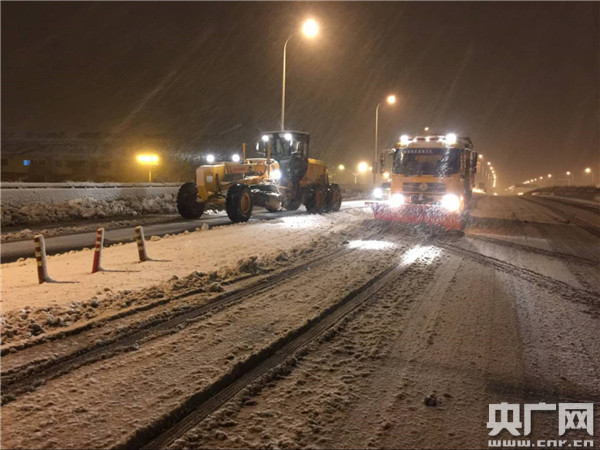 隨著降雪持續(xù),3日15時(shí)30分,合肥市氣象臺(tái)發(fā)布暴雪藍(lán)色預(yù)警,并在晚間將預(yù)警升級(jí)為橙色。1月3日夜間10時(shí)40分起,陸續(xù)有部分橋梁匝道和風(fēng)口處開始出現(xiàn)積雪結(jié)冰,為保障車輛通行安全,合肥市政處立即啟動(dòng)融雪劑撒布作業(yè)。隨著雪勢(shì)越來越猛,積雪結(jié)冰范圍逐漸擴(kuò)大,融雪劑撒布作業(yè)在各大高架橋和市管重點(diǎn)橋梁全面鋪開。融雪劑撒布過程中對(duì)金寨路高架橋、阜陽北路高架橋、銅陵路高架橋及高鐵南站東落客平臺(tái)進(jìn)出匝道等積雪較多的路段,配合使用除雪平地機(jī)實(shí)施清雪作業(yè),以最快速度清除積雪,保障道路暢通。至1月4日凌晨3時(shí)30分,完成了第一輪融雪劑撒布及清雪作業(yè)。至1月4日7時(shí),經(jīng)過一晝夜的奮戰(zhàn),合肥市九座高架橋及市管重點(diǎn)橋梁通行正常。