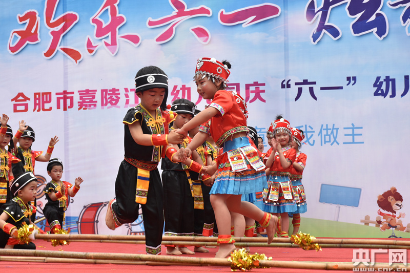 活動(dòng)現(xiàn)場,來自合肥市嘉陵江路幼兒園的小朋友們,在舞臺上用靈動(dòng)優(yōu)美的舞蹈慶祝專屬自己的節(jié)日。一個(gè)個(gè)或化身小蜜蜂,或扮成小書童演繹經(jīng)典舞蹈;場上民族風(fēng)和現(xiàn)代風(fēng)穿插,相得益彰。舞臺下,觀眾們歡聲笑語不斷,和孩子們共同歡度六一。(任蘭 攝)