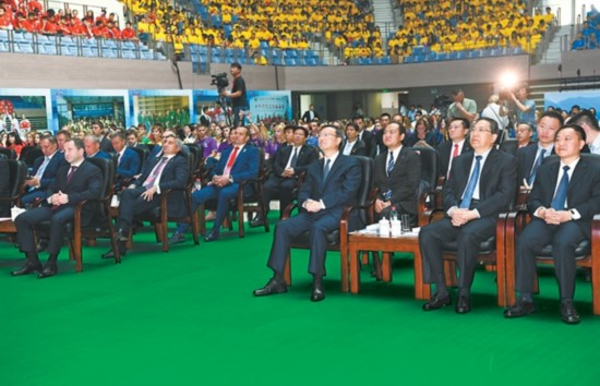 6月16日下午,國(guó)務(wù)委員楊潔篪、俄羅斯總統(tǒng)全權(quán)代表巴比奇、省委書(shū)記李錦斌、省長(zhǎng)李國(guó)英共同出席第四屆中俄“長(zhǎng)江—伏爾加河”青年論壇閉幕式。記者吳文兵攝