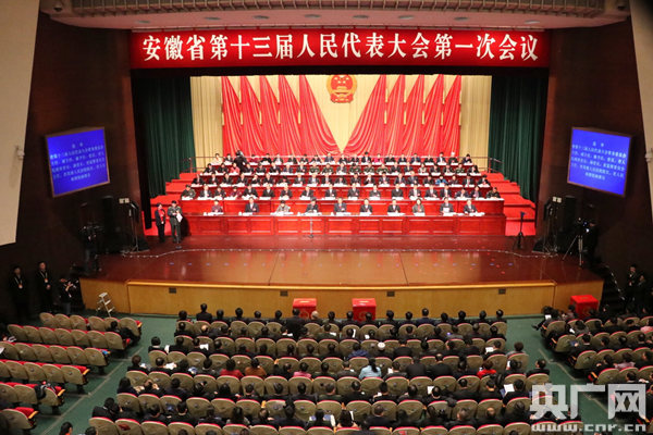 安徽省十三屆人大一次會議今日舉行閉幕會(央廣網(wǎng)徐鵬 攝)
