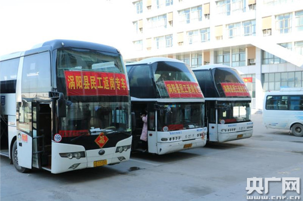 亳州市渦陽縣開出農(nóng)民工返崗專車(央廣網(wǎng)發(fā) 亳州市委宣傳部供圖)