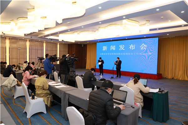 與時(shí)間賽跑,安徽抗疫新聞發(fā)布會(huì)站著講(央廣網(wǎng)發(fā) 劉煒鑫 攝)