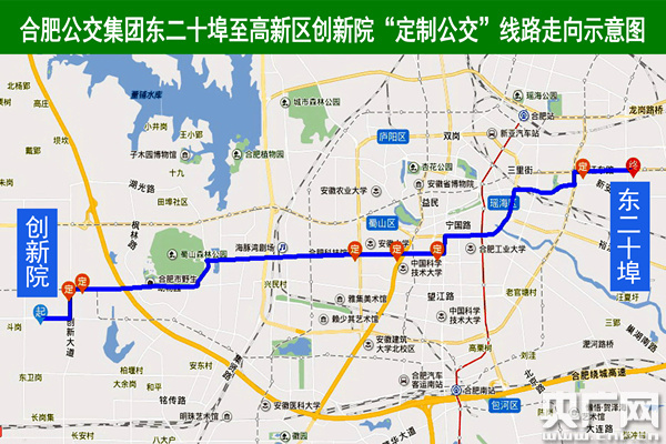 央廣網(wǎng)合肥8月4日消息 為方便居住在東二十埠、在合肥市高新區(qū)創(chuàng)新院工作的市民就近乘坐公交車快捷出行,提供迅速、準(zhǔn)點、舒適的上下班通勤服務(wù),免除這部分乘客中途換乘不同線路常規(guī)公交車輛的不便,合肥公交集團專線車隊將于8月7日起開辟連接?xùn)|二十埠到高新區(qū)創(chuàng)新院的“定制公交”線路。
