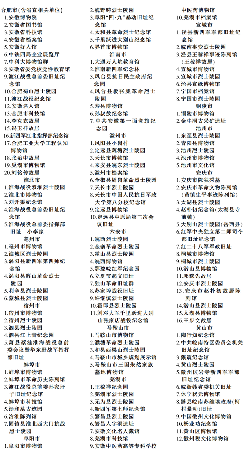 擬推薦安徽省第五屆愛(ài)國(guó)主義教育示范基地名單