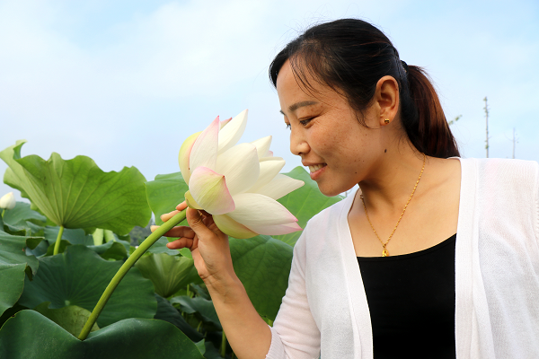 “接天蓮葉無窮碧,映日荷花別樣紅!7月7日,亳州市譙城區(qū)牛集鎮(zhèn)靈子門村蓮藕種植基地,碧葉連天,紅蓮怒放,賞荷的村民絡(luò)繹不絕,紛紛拍照留念;丶葹榇迕裉峁┝诵蓍e新去處,又幫助貧困群眾鼓起“錢袋子”、脫掉“窮帽子”。