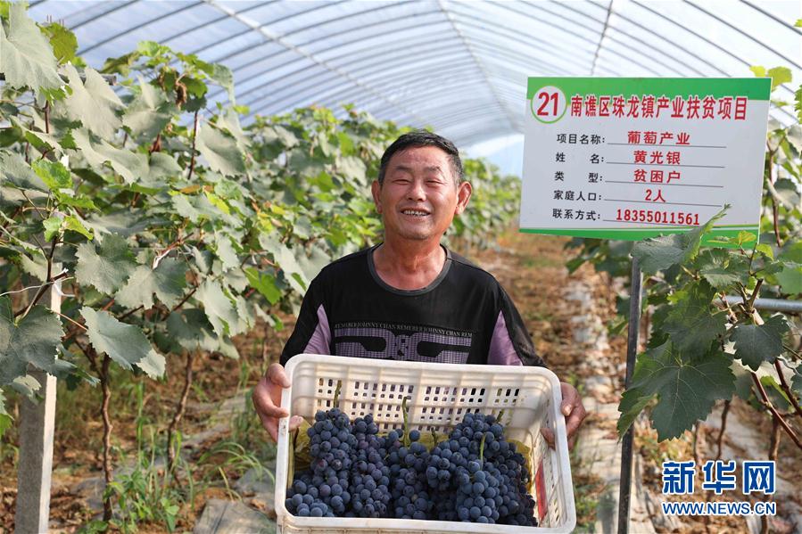 眼下,滁州市南譙區(qū)珠龍鎮(zhèn)扶貧產(chǎn)業(yè)園中的葡萄進入采摘季。當?shù)赝ㄟ^幫扶貧困戶發(fā)展特色水果種植項目,增強貧困戶的自身“造血”能力,拓寬致富門路。新華社記者 曹力 攝