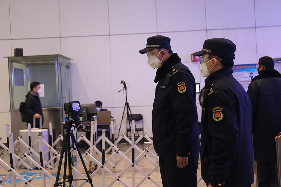 剛檢查完餐廳,張獻(xiàn)輝的手機(jī)鬧鐘就響了起來。他對(duì)記者說:“11點(diǎn)了,有趟列車要進(jìn)站,一會(huì)兒5號(hào)出站口會(huì)有旅客出站,我們要去那兒檢查體溫監(jiān)測(cè)秩序情況了!彼掖亿s到5號(hào)出站口,和出站口的工作人員打了聲招呼,便開始對(duì)體溫監(jiān)測(cè)設(shè)備運(yùn)行情況進(jìn)行檢查。不一會(huì)兒,陸續(xù)有旅客出來,張獻(xiàn)輝緊盯著屏幕,以確保儀器監(jiān)測(cè)到了每位旅客的體溫。一切正常,工作人員關(guān)閉了出站通道,張獻(xiàn)輝這才舒了一口氣。
