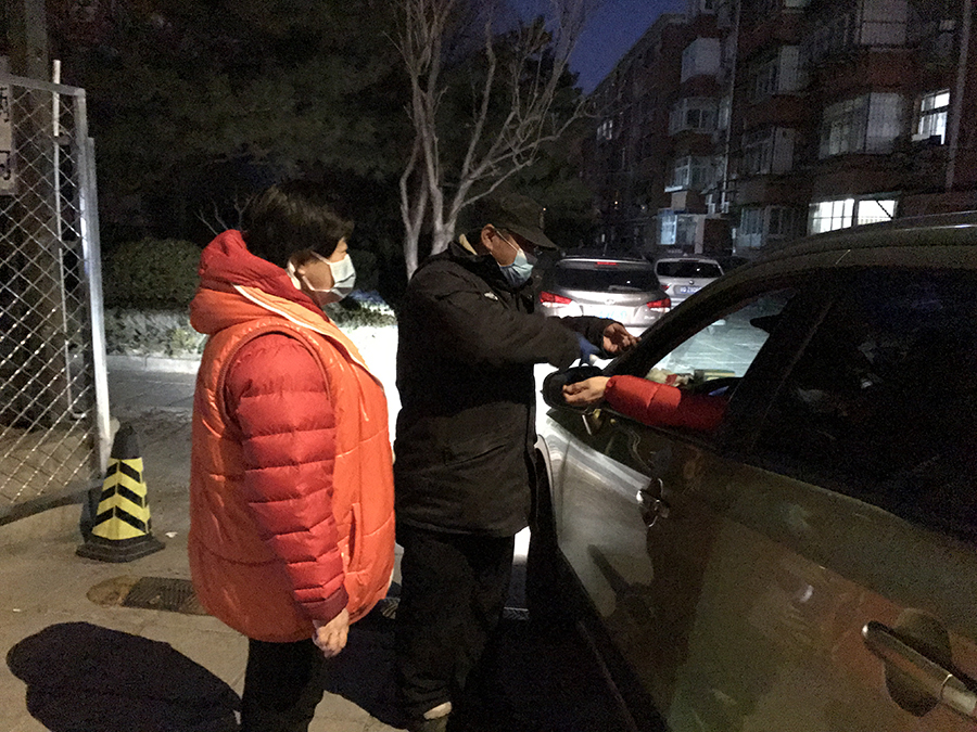 “晚上下班,在小區(qū)出入口看到了自己的街坊鄰居,也有同事,覺得很親切!”居住在云崗的居民說。地區(qū)單位職工一手抓復(fù)工復(fù)產(chǎn)、一手抓疫情防控,結(jié)束一天工作的他們,在夜幕降臨時走上社區(qū)疫情防控一線的“新崗位”,履行新職責(zé)。目前,云崗街道轄區(qū)共有防控卡口69個,基本分布在地區(qū)單位職工小區(qū)。街道將各社區(qū)卡口具體位置進(jìn)行梳理,制作“疫情防控值守點(diǎn)位圖”,各地區(qū)單位結(jié)合樓院產(chǎn)權(quán)情況主動認(rèn)領(lǐng)40個卡口,組織本單位就近居住的職工志愿者分組排班,于每天晚上6點(diǎn)至9點(diǎn)下班高峰時段頂崗值守。每晚上崗前,由包片社區(qū)干部對職工志愿者進(jìn)行崗前培訓(xùn),并發(fā)放口罩、手套等防護(hù)物資。職工志愿者們在下班高峰時段來臨前準(zhǔn)時出現(xiàn)在小區(qū)出入口,接過手套、額溫槍,戴好口罩、紅袖標(biāo),進(jìn)行出入證查詢、體溫測量、來訪登記等工作,有時甚至來不及吃晚飯就匆匆忙活起來,扛起人流、車流量最為密集時段的重任,默默守護(hù)單位屬地和社區(qū)家園。晚9點(diǎn)職工志愿者值守結(jié)束后,小區(qū)物業(yè)保安人員持續(xù)在崗,確保夜間防控不留空白。