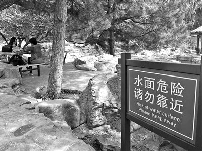 此外,在公園入口處有一片池塘,池塘旁的指示牌上寫著“水面危險(xiǎn),請勿靠近”,其翻譯為“Risk of water surface Please Keep away”。貝斯看過該指示牌的英文翻譯后表示,她認(rèn)為園方提醒的是“地面有積水因此很滑,存在風(fēng)險(xiǎn)”。她表示,如果是要提醒避免落水,英國人可能會(huì)選擇用英文警示游客“此處水深危險(xiǎn)”。
