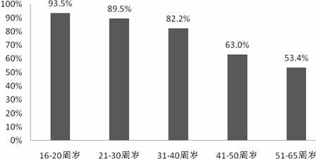 圖1 各年齡段使用過共享單車的比例