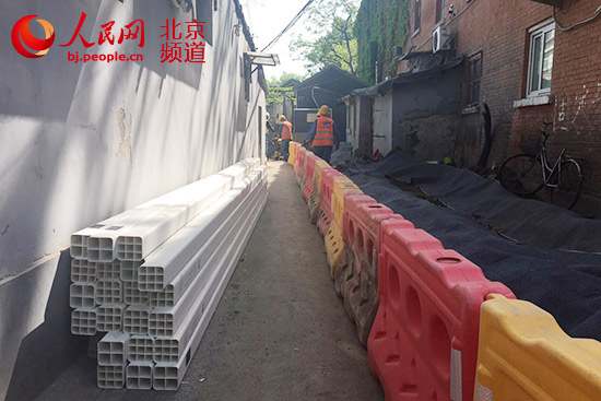 金融街街道西斜街42號院門前,背街小巷架空線入地施工正在緊張的進(jìn)行。人民網(wǎng) 鮑聰穎 攝
