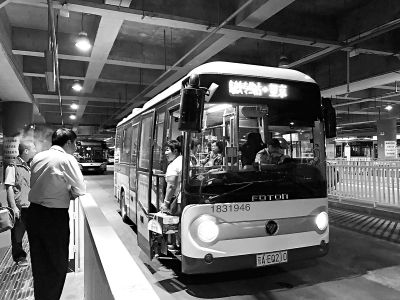 北京南站北廣場(chǎng)交通樞紐處,最后一名乘客拉著行李箱,在路牌的指示下,走到高鐵專線6號(hào)線候車處,登上一輛開(kāi)往望京的巴士。很快,該輛黃色大巴駛離站臺(tái),消失在闌珊的夜色中。