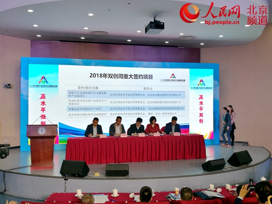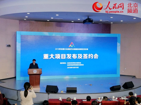 10月15日,2018年全國(guó)雙創(chuàng)周北京會(huì)場(chǎng)舉行“重大項(xiàng)目發(fā)布及簽約”。人民網(wǎng)孟竹 攝