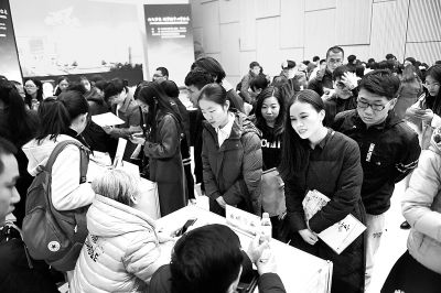 2019年北京市通州區(qū)走進(jìn)高校英才選聘活動在清華大學(xué)舉行,參加選聘會的學(xué)生爭相投遞簡歷,與用人單位交流。本報記者和冠欣 攝