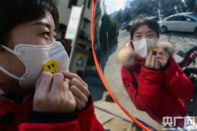 北京石景山區(qū)魯谷街道為防護(hù)口罩貼笑臉,鼓勵(lì)居民笑對戰(zhàn)“疫”(央廣網(wǎng)發(fā) 通訊員供圖)