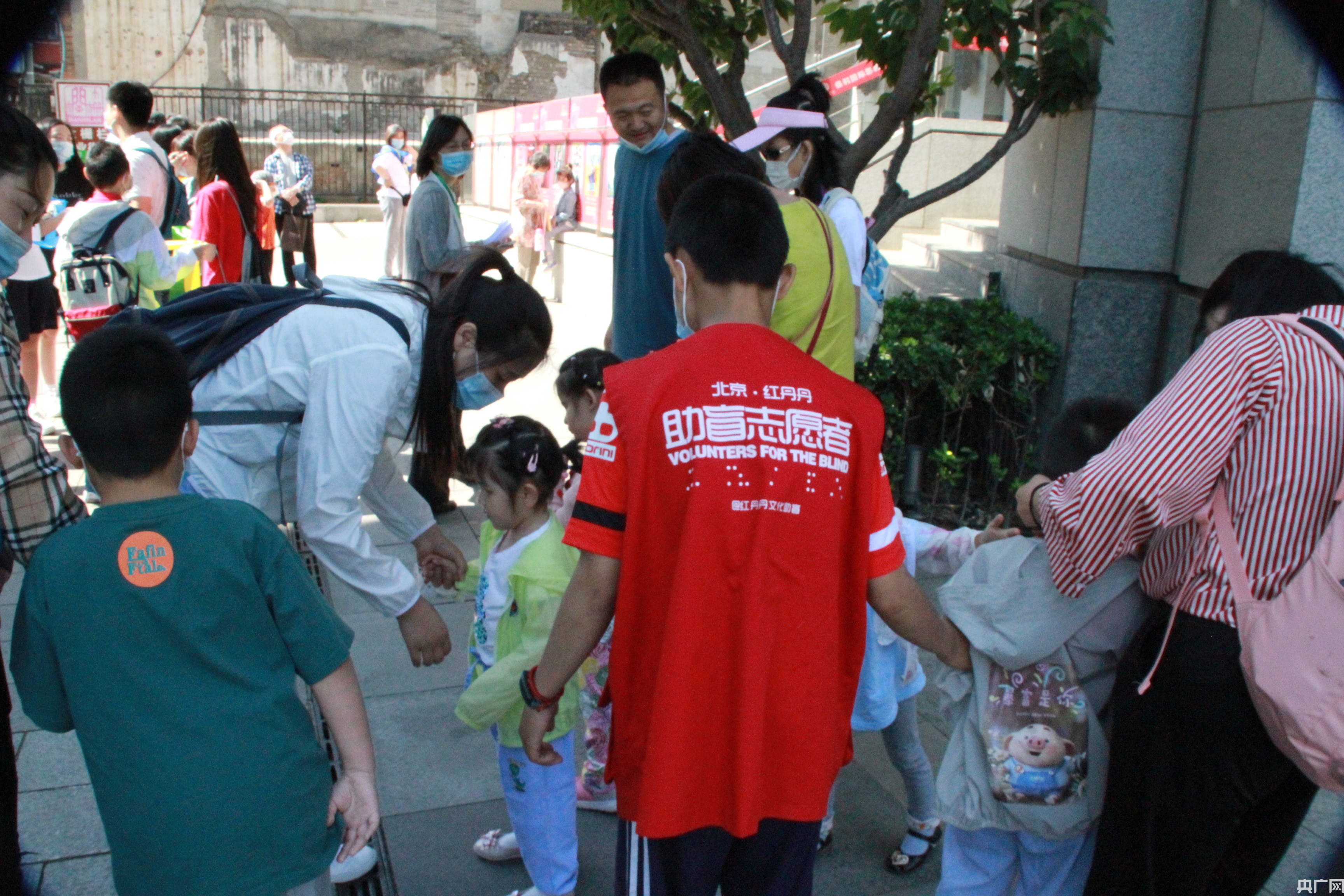 “那些盲人小朋友平時(shí)生活里也是我剛剛蒙上眼的樣子,一定很辛苦吧!以后在路上如果遇到盲人小朋友的話,我也非常愿意去幫助他們!币晃痪瘜氃隗w驗(yàn)蒙眼行走之后有了這樣的感受。