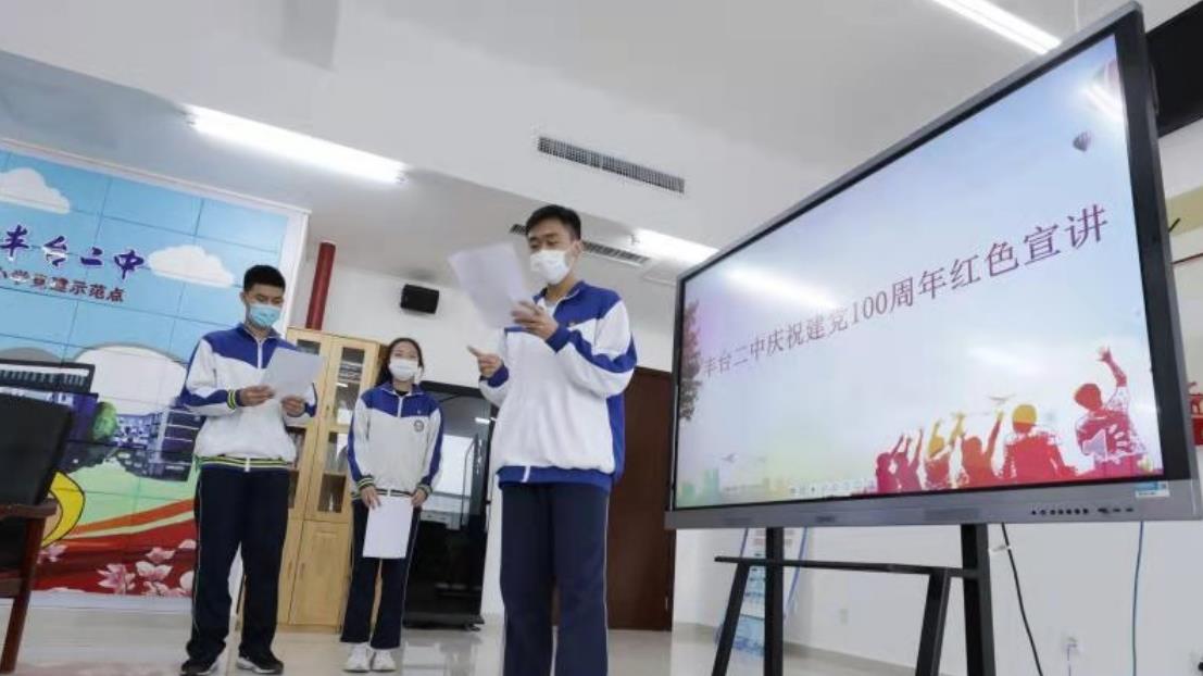 。▓D為豐臺(tái)二中學(xué)生進(jìn)行建黨百年紅色宣講演練 豐臺(tái)區(qū)宣傳部供圖 央廣網(wǎng)發(fā))