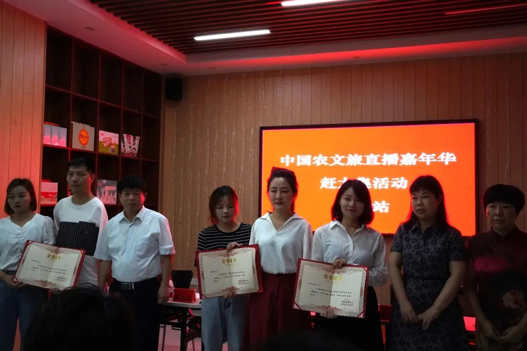 活動中,秦宏果、張忠江、張海峰為楊莉、任建偉、陳文利三位主播頒發(fā)證書,授予其博愛縣“助農(nóng)大使”稱號。