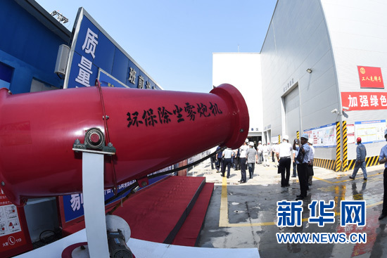中鐵七局北京地鐵19號(hào)線01合同段施工場(chǎng)地的環(huán)保除塵霧炮機(jī)(5月26日攝)