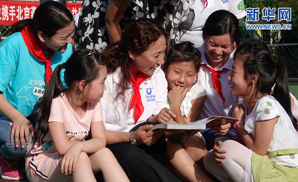 5月31日,愛心企業(yè)的員工為北京昌平燕京小天鵝公益學(xué)校的孩子講故事。