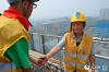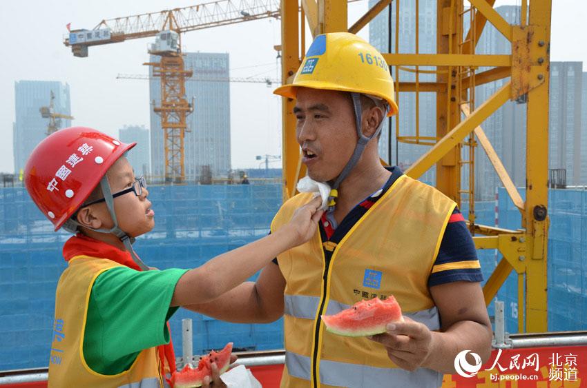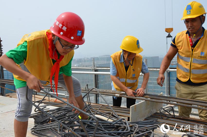 李帥恒和父母一起綁扎鋼筋,體驗(yàn)父母工作的辛苦。人民網(wǎng)尹星云 攝 人民網(wǎng)北京7月17日電(尹星云)昨天,來自中建二局一公司全國各地的留守農(nóng)民工子女來到北京亦莊某工地,見到了他們久別的父母,體驗(yàn)了父母勞動(dòng)的辛苦。 孩子們首先來到工地的項(xiàng)目安全體驗(yàn)區(qū),接受安全教育。其中的高處墜落、物體打擊、觸電體驗(yàn)等引起了孩子們濃厚興趣。隨后,孩子們來到施工現(xiàn)場,體驗(yàn)父母勞動(dòng)場景。在鋼筋綁扎工作面,來自河南的13歲留守兒童李帥恒看到父母在高溫中綁扎鋼筋,主動(dòng)遞上了西瓜,并體驗(yàn)了父母綁扎鋼筋的工作!耙呀(jīng)有半年沒有見到孩子了,今天能在工地見到孩子有點(diǎn)意外驚喜!备赣H李國勝有點(diǎn)激動(dòng),而李帥恒看到父母又熱又累,也很心疼他們,他告訴記者,以后一定要繼續(xù)好好學(xué)習(xí),用實(shí)際行動(dòng)報(bào)答父母。 和李帥恒一樣,其他孩子也為在高溫中工作的父母送上了西瓜,并體驗(yàn)父母的辛勞。活動(dòng)中,來自貴州山區(qū)的15歲留守兒童小倩朗讀了給爸爸媽媽的一封信。信中說讓父母不要再擔(dān)心她和爺爺奶奶的生活,現(xiàn)在老家變化特別大,國家扶貧為村里修通了公路,建起了茶園,校車都通到了村里。她還貼心地告訴父母在工地一定要注意安全。 接下來,孩子們還將在中建二局一公司叔叔阿姨們的陪同下參觀天安門、人民大會(huì)堂、觀看升旗儀,游覽京城名勝古跡,接受愛國教育。 據(jù)了解,近年來中建二局一公司積極踐行社會(huì)責(zé)任,主動(dòng)關(guān)心關(guān)愛農(nóng)民工及其子女,已經(jīng)連續(xù)第七年開展此項(xiàng)“親情呼喚安康活動(dòng)”,使近300個(gè)農(nóng)民工家庭實(shí)現(xiàn)了團(tuán)圓夢,同時(shí),此次活動(dòng)也是全國總工會(huì)主辦的“感恩祖國,擁抱未來”2017年陽光少年成長營的一部分。 -