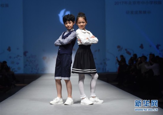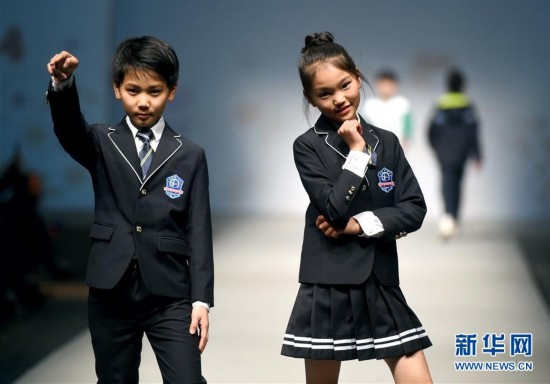 12月3日,在北京服裝學(xué)院舉行的2017北京市中小學(xué)校服研發(fā)成果展示活動(dòng)上,學(xué)生模特在展示校服。新華社記者羅曉光攝