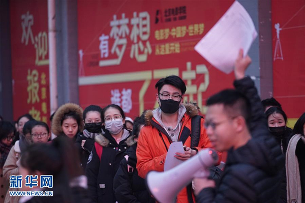 2月27日,在北京電影學院,參加藝考的考生在等候進入考場。新華社記者 沈伯韓 攝