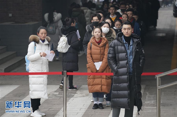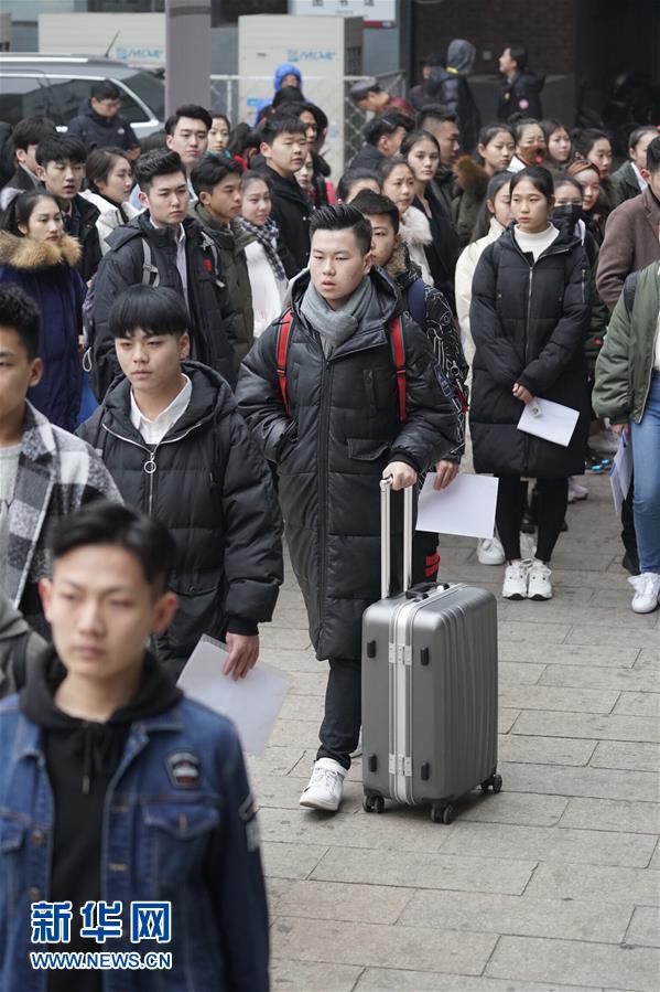 2月27日,在北京電影學院,參加藝考的考生在等候進入考場。新華社記者 沈伯韓 攝 -