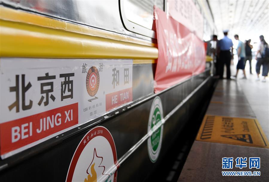 6月24日,“京和號(hào)”旅游專列?空九_(tái)準(zhǔn)備出發(fā)。 當(dāng)日,2018年首趟“京和號(hào)”旅游專列在北京開行。來(lái)自京津冀區(qū)域的400多名游客乘坐此趟專列從北京西站出發(fā),開啟為期16天涵蓋和田、喀什、庫(kù)爾勒、吐魯番、哈密、張掖、敦煌等地的旅程。新華社記者 張晨霖 攝