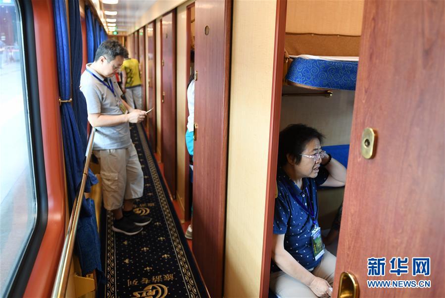 6月24日,游客在“京和號(hào)”旅游專列里等候發(fā)車。 當(dāng)日,2018年首趟“京和號(hào)”旅游專列在北京開行。來(lái)自京津冀區(qū)域的400多名游客乘坐此趟專列從北京西站出發(fā),開啟為期16天涵蓋和田、喀什、庫(kù)爾勒、吐魯番、哈密、張掖、敦煌等地的旅程。新華社記者 張晨霖 攝 -