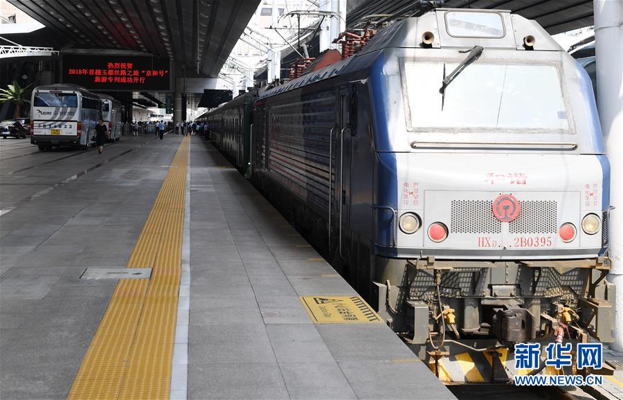 6月24日,“京和號(hào)”旅游專列駛出北京西站。 當(dāng)日,2018年首趟“京和號(hào)”旅游專列在北京開行。來(lái)自京津冀區(qū)域的400多名游客乘坐此趟專列從北京西站出發(fā),開啟為期16天涵蓋和田、喀什、庫(kù)爾勒、吐魯番、哈密、張掖、敦煌等地的旅程。新華社記者 張晨霖 攝 -