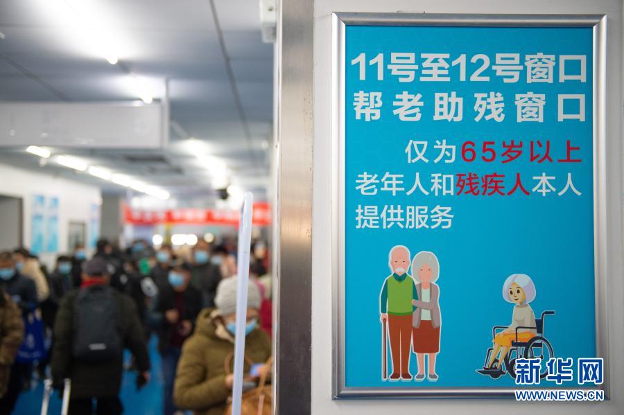 首都醫(yī)科大學附屬宣武醫(yī)院門診大廳里立起了“幫老助殘窗口”引導牌(12月10日攝)。