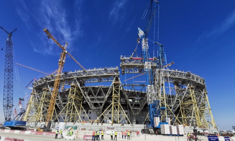 央廣網(wǎng)北京2月16日消息(記者郭淼)北京時間2月16日16:00,中國鐵建承建的2022年世界杯主體育場——盧賽爾體育場項(xiàng)目主體鋼結(jié)構(gòu)吊裝完成,建筑的“馬鞍形”外觀基本成型,實(shí)現(xiàn)重大施工節(jié)點(diǎn)突破。
