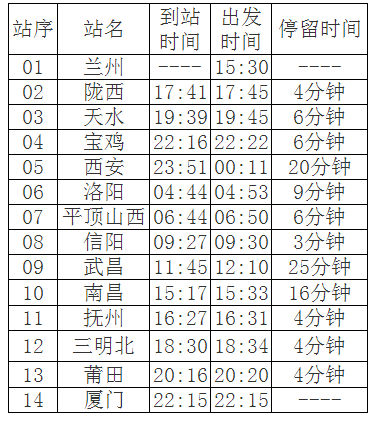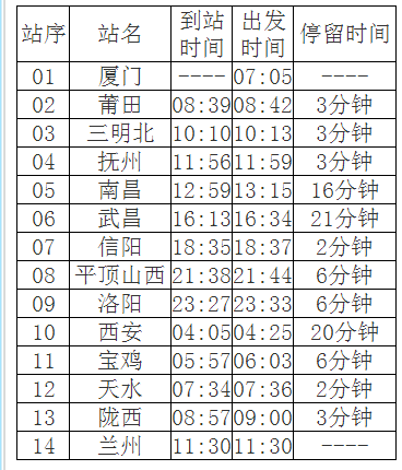 5月20日廈門至蘭州間將首開直通客車